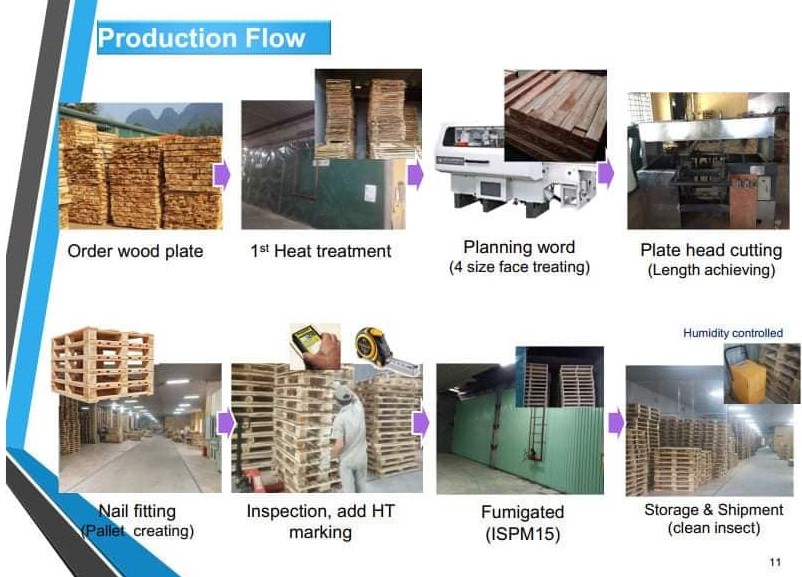 - Chúng tôi xin được giới thiệu sơ lược với Quý vị về Quy trình sản xuất pallet gỗ của Wooden pallet Việt Nam theo hệ thống Tiêu chuẩn hiện hành đã và đang được áp dụng tại Việt Nam và các Nước trên Thế giới. Quy trình sản xuất Pallet gỗ thông thường phải được thực hiện qua các công đoạn sau. Cụ thể: